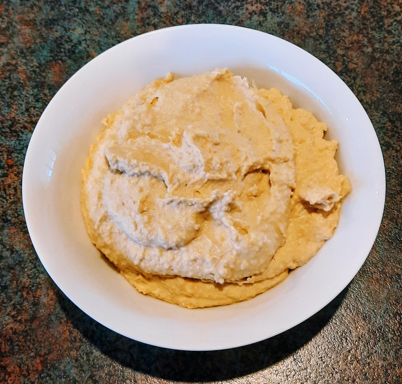 1. Add all of the ingredients to a food processor and blend until smooth. Add additional water to reach desired consistency.